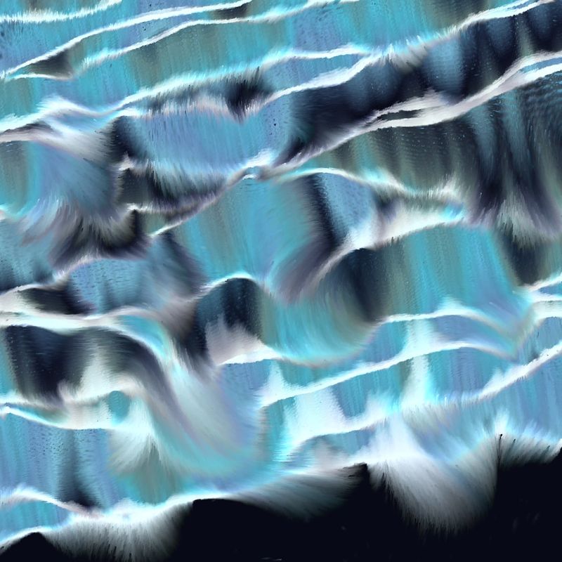 Entirely crafted through code, the waves in "Eternal Tides" transcend mere replication of oceanic movements; they are imbued with vibrant, evolving colors and patterns that echo the dynamic interplay of light upon the waters. Time plays a critical role in shaping the visual narrative, with a shader gradually altering hues to create a time-lapse effect reminiscent of polar stratospheric clouds and light dispersion in water. Each piece invites viewers to pause and observe the process that creates the artwork, where light, water, and form converge to narrate the ebb and flow of life’s experiences.